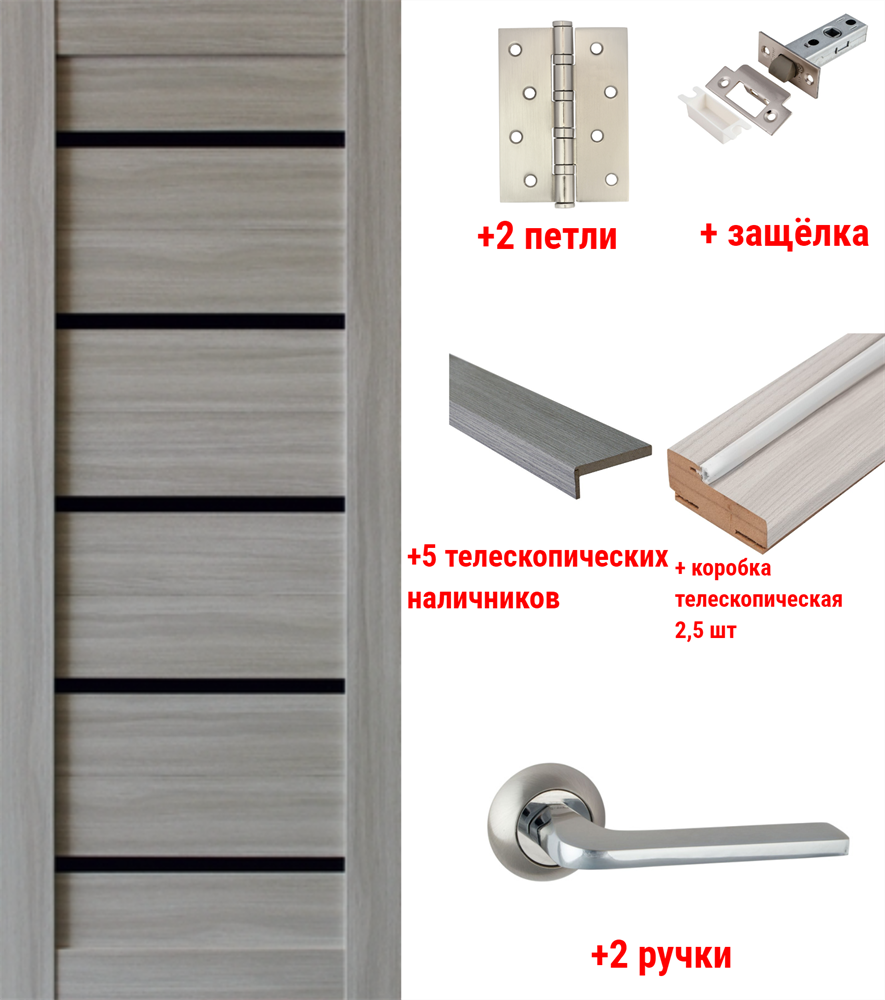 Доборы в цвет полотна, фурнитура (ручки, петли и т.д.) на выбор из ассортимента магазина