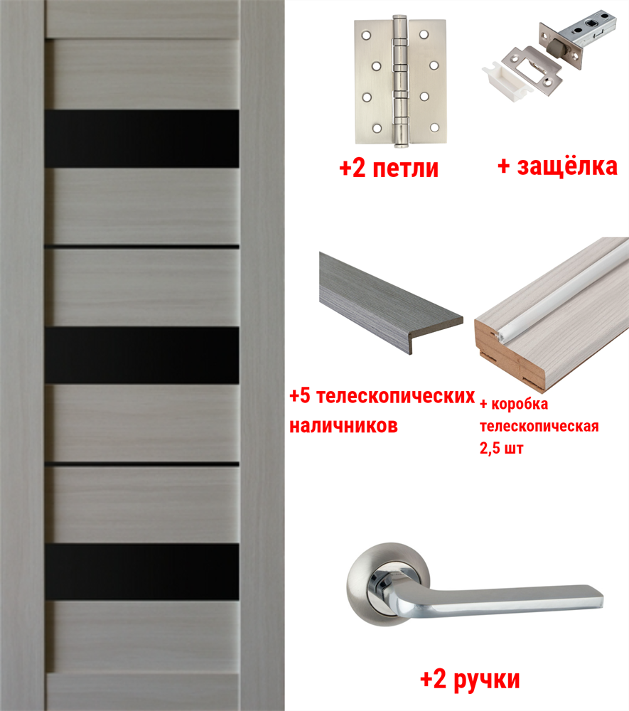 Доборы в цвет полотна, фурнитура (ручки, петли и т.д.) на выбор из ассортимента магазина